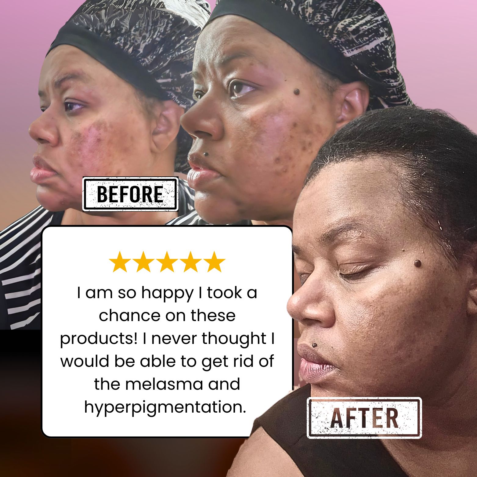 "I can't say enough good things about this skincare brand! The products worked wonders on my skin – clearing up my breakouts, lightening dark spots, and giving me a beautiful glow. Even my scars from severe breakouts are healing nicely."