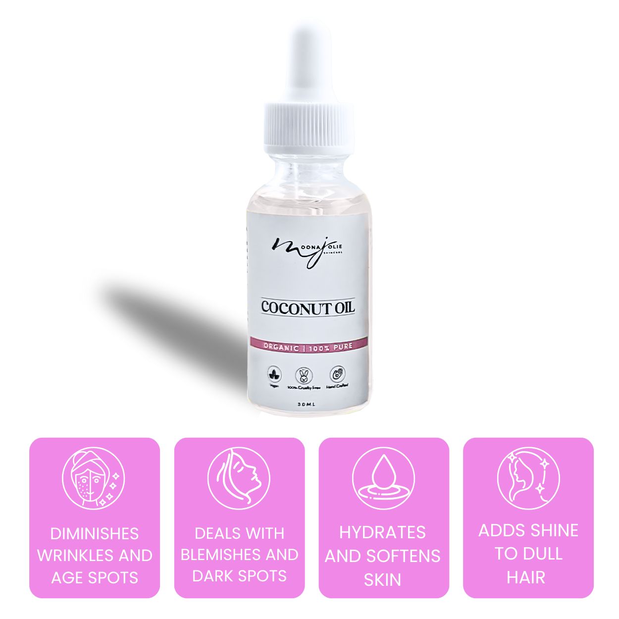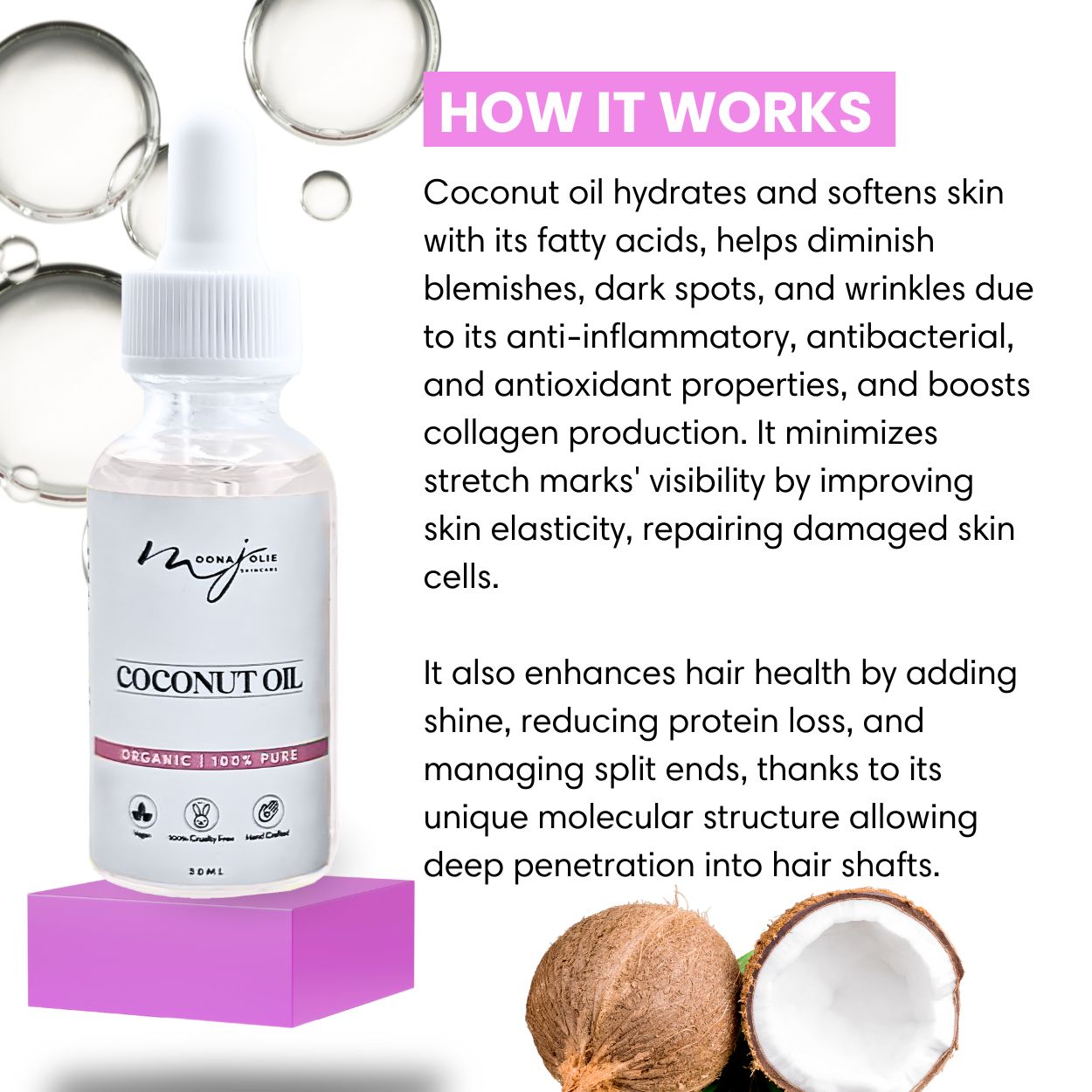 Experience the timeless beauty secret of Jolie's Organic Coconut Oil, a trusted natural remedy for generations. Made from the freshest coconuts, this oil deeply moisturizes and heals both skin and hair.