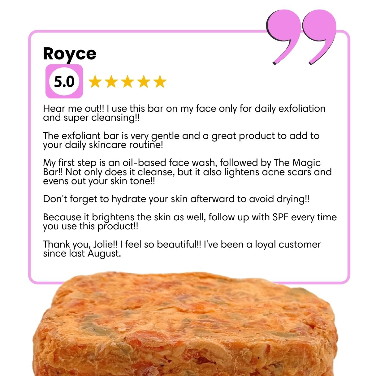 Jolie's Exfoliating Soap with Vitamin E & C is designed for individuals seeking to enhance their skin's natural brightness and texture. It's especially beneficial for those with dull skin, hyperpigmentation, signs of aging, and acne. The soap offers gentle exfoliation, making it suitable even for sensitive skin. This versatile product is perfect for anyone looking to achieve a clearer, more youthful, and radiant complexion through regular use.