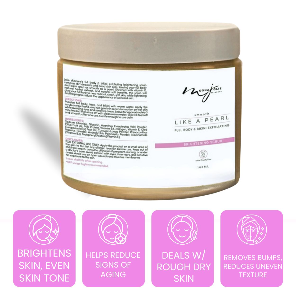 The Smooth Like a Pearl Full Body, Face & Bikini Scrub is scrub designed to enhance skin tone and texture across your entire body, including delicate areas like the face and bikini line. It comes with two variant colors.