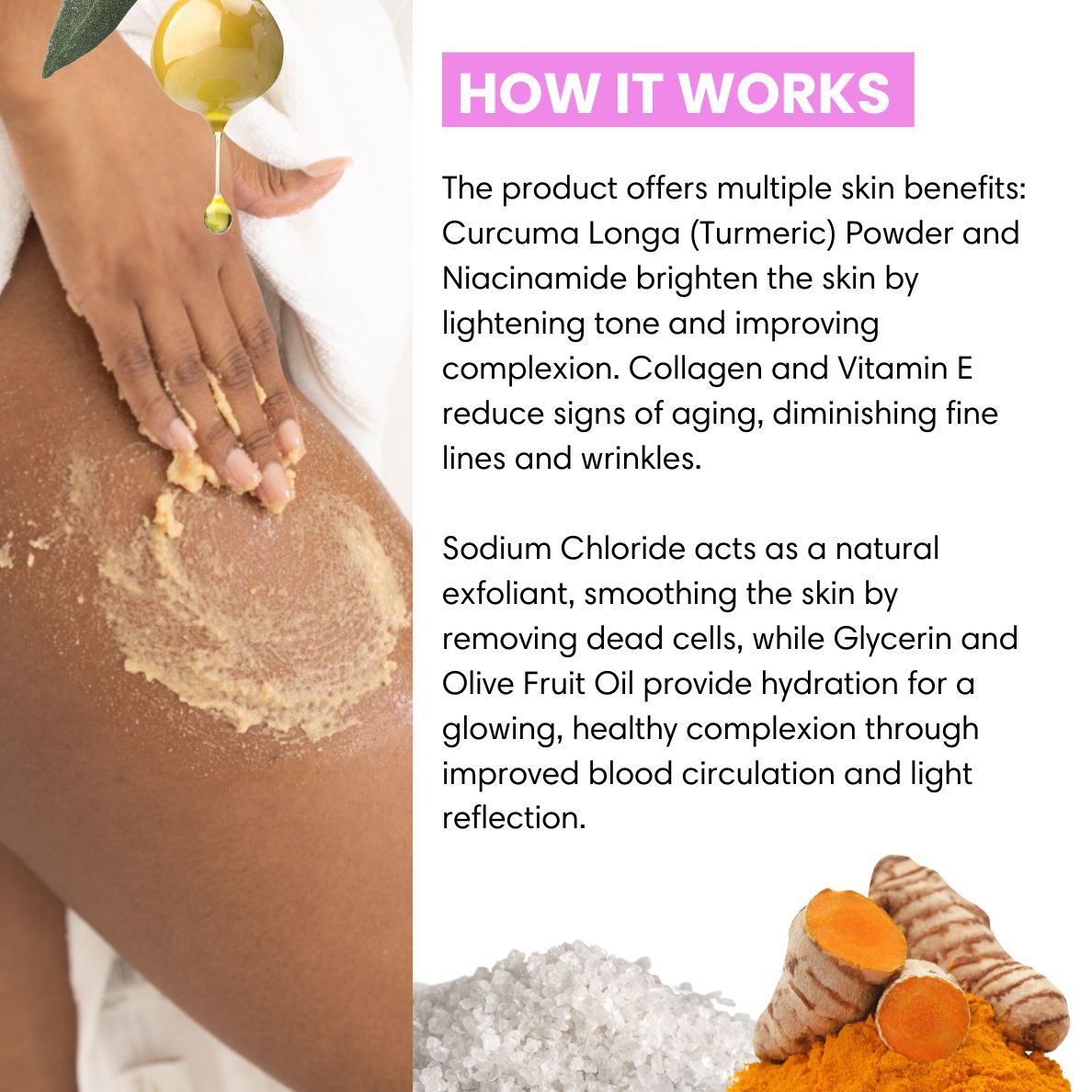 This scrub is perfect for anyone looking to improve their skin’s appearance and texture. Whether you're preparing for summer, a vacation, or simply looking to maintain a radiant complexion year-round, this scrib is suitable for all skin types and is especially beneficial for those dealing with uneven skin tone, dark spots, or dull skin.