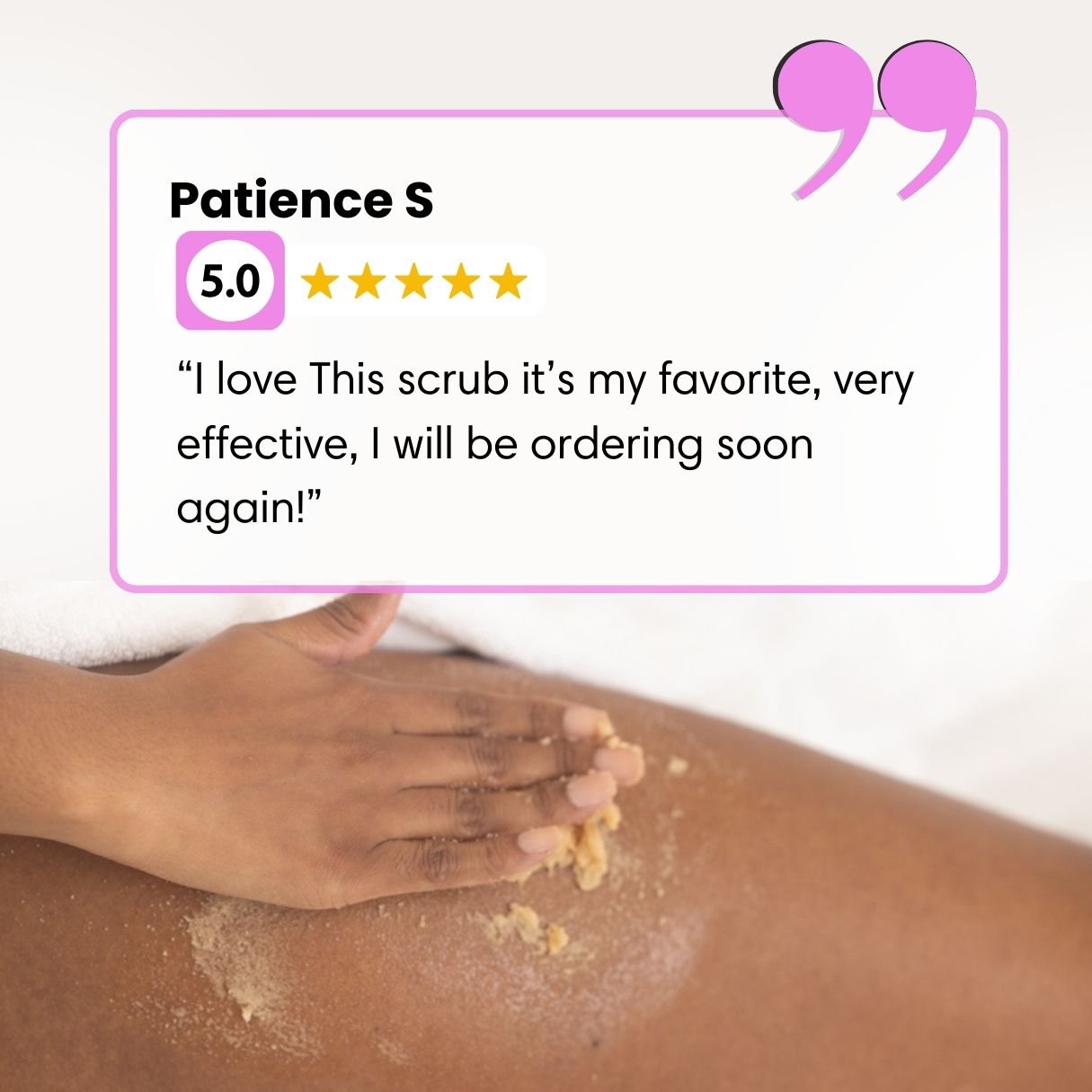 We recommend this scrub and add Dark Spot Eraser lotion or the Knuckle Eraser lotion for faster results.