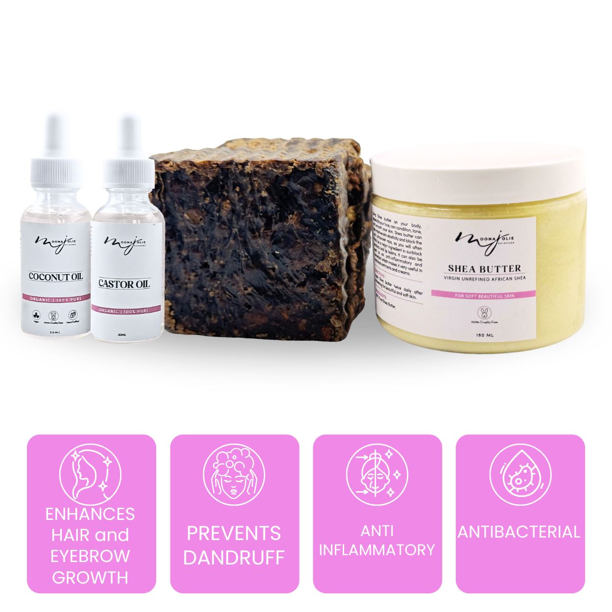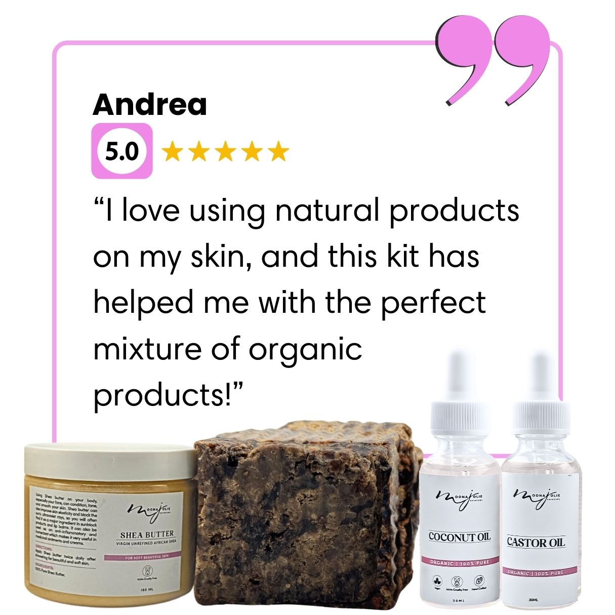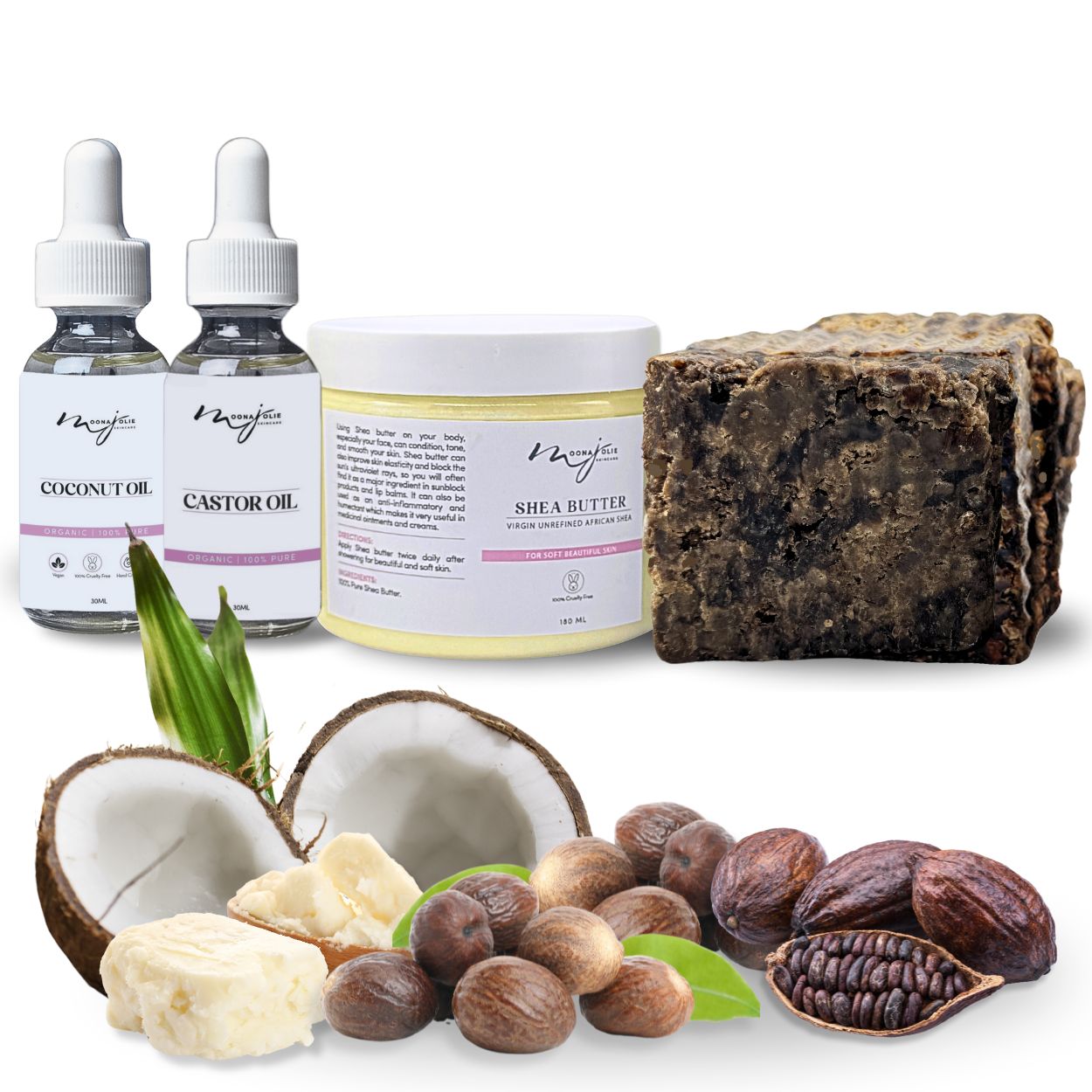 - Dry and Flaky Skin: The intensive moisturizing effects of shea butter, coconut oil, and castor oil can hydrate and nourish dry skin, improving its texture and appearance.