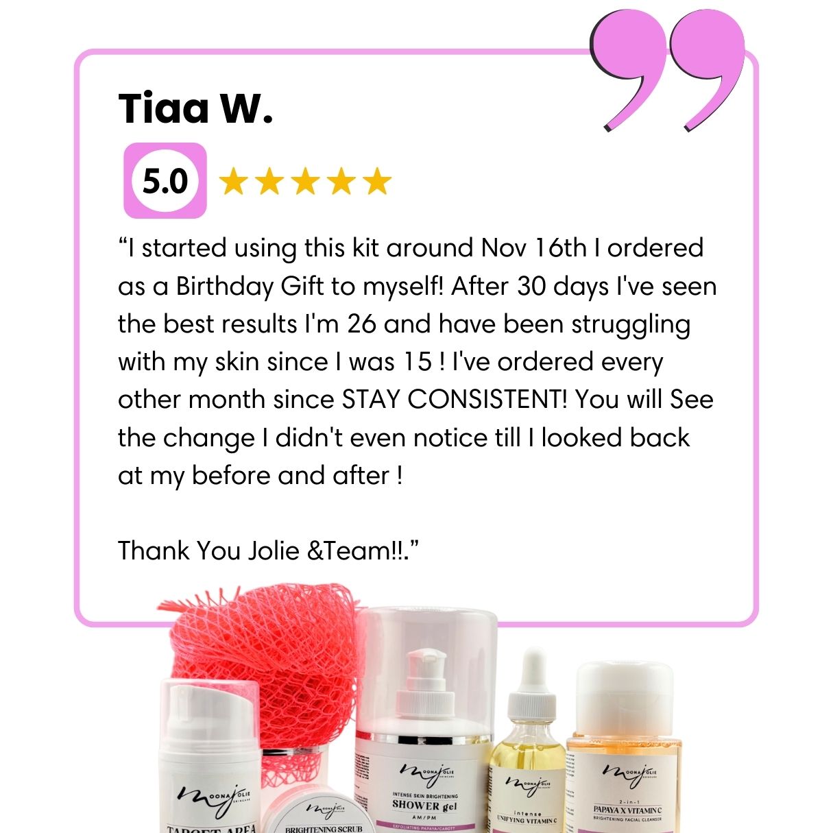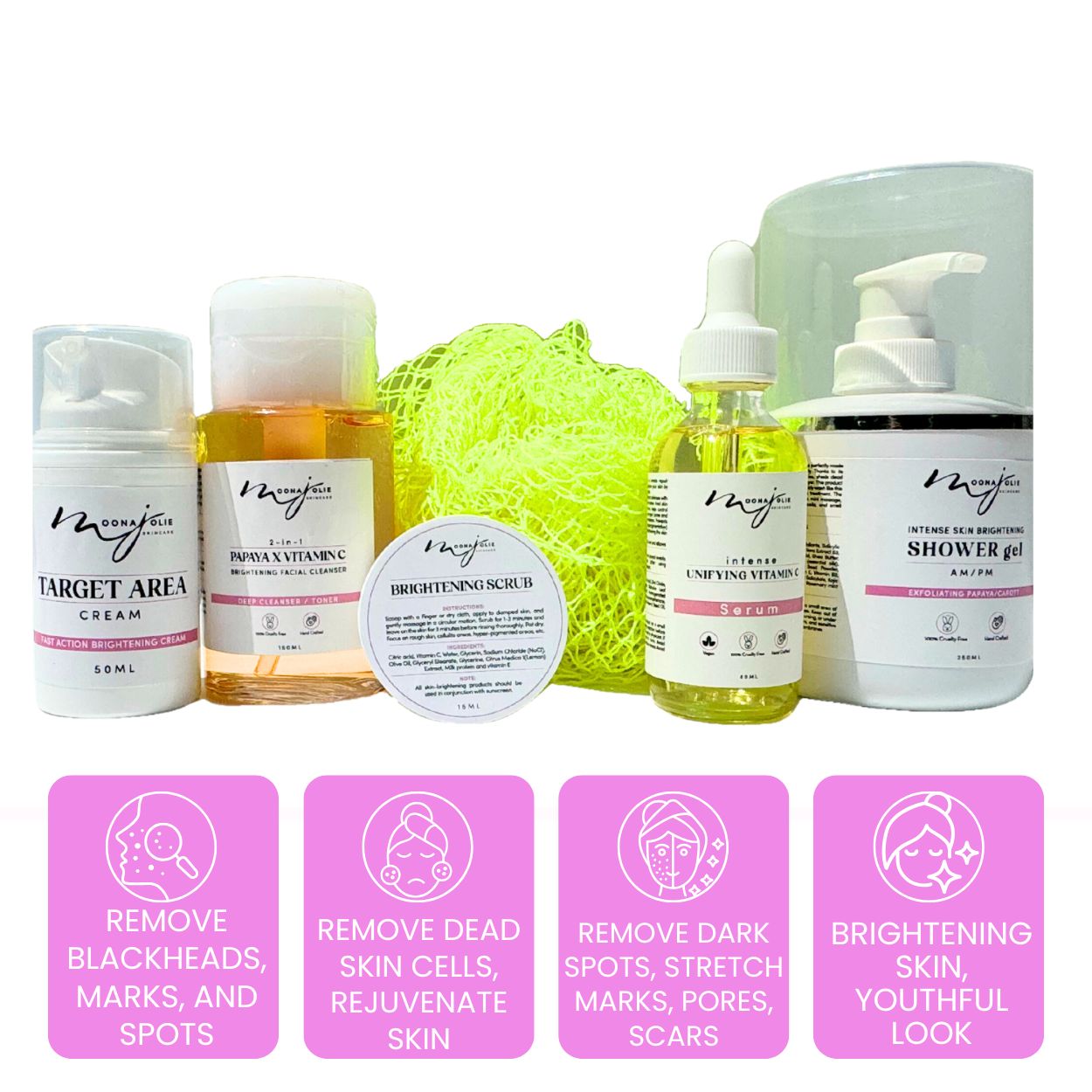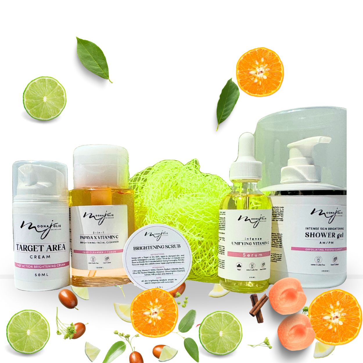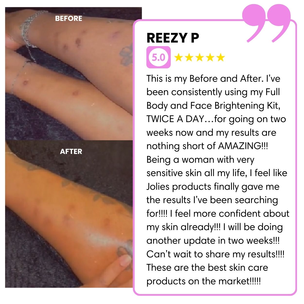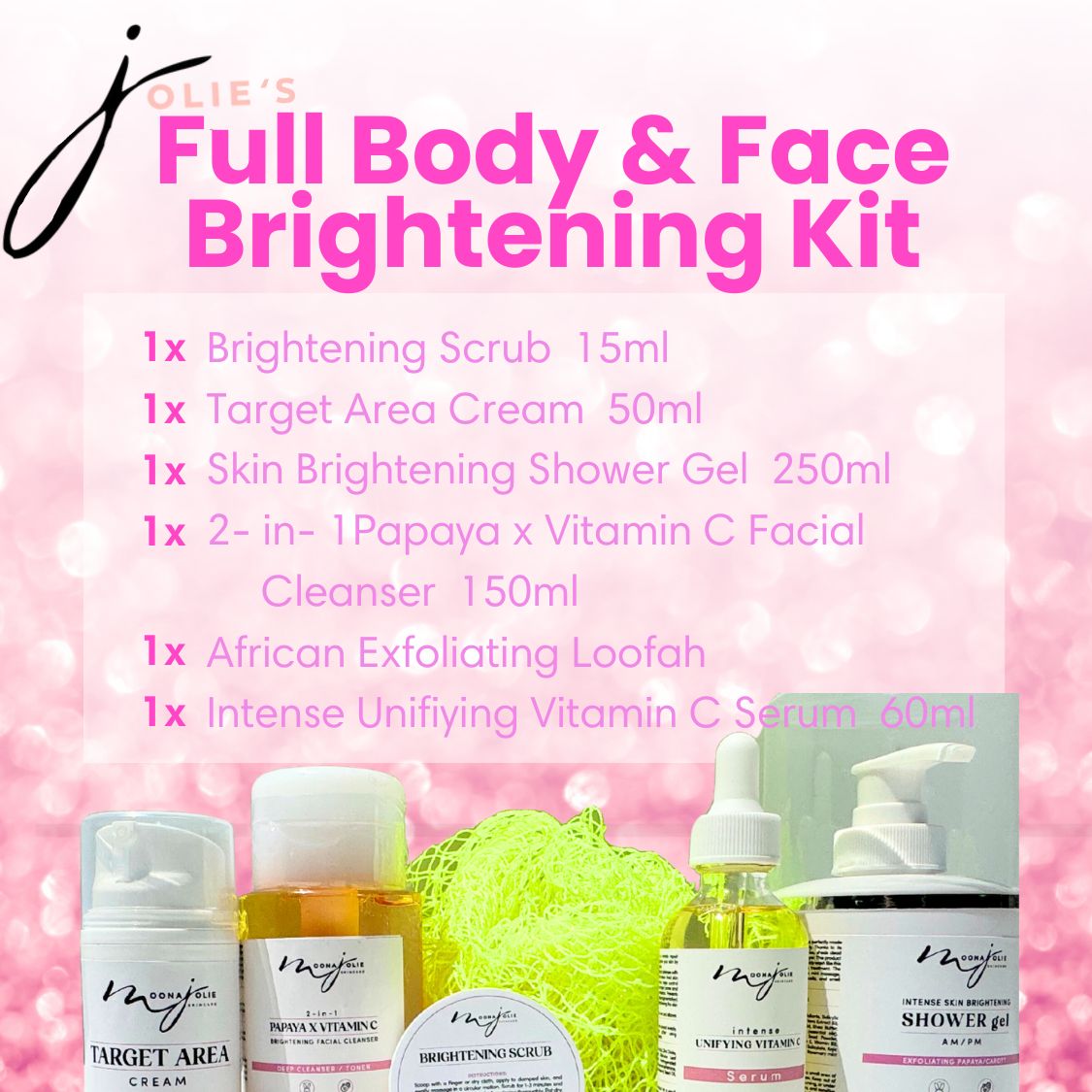 Introducing Jolie's Ultimate Skin Brightening Kit – your all-in-one solution for achieving a flawless, radiant complexion. This comprehensive kit is meticulously crafted to revitalize and transform your skin, offering everything you need to illuminate from head to toe.