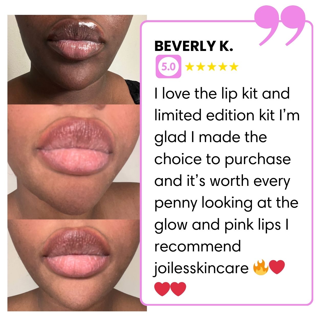 Jolie's Lip Kit is suited for everyday use and can be a part of both basic and extensive skincare routines, aiming to deliver visible improvements in lip color and texture.