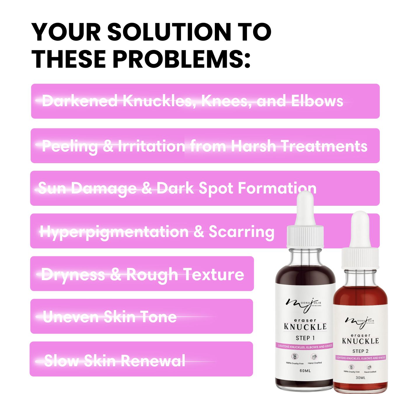 A) Moona Jolie Skincare is designed for individuals seeking natural and effective solutions to a variety of skin concerns, including skin brightening, uneven skin tones, discoloration, dark spots, acne, and other skin diseases.